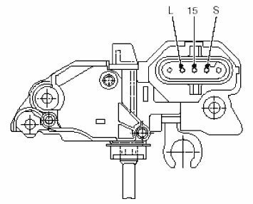 После включения зажигания, на генератор подается напряжение через контактный вывод 15 (1010). Регулятор использует это напряжение для срабатывания предварительного возбуждения (самовозбуждения). В случае разрыва цепи в этом соединении, генератор не будет вырабатывать напряжение до тех пор, пока частота его вращения не составит прибл. 5000 об/мин. Это соответствует частоте вращения двигателя около 1500 об/мин. По достижению данной частоты вращения генератора, произойдет его самовозбуждение.