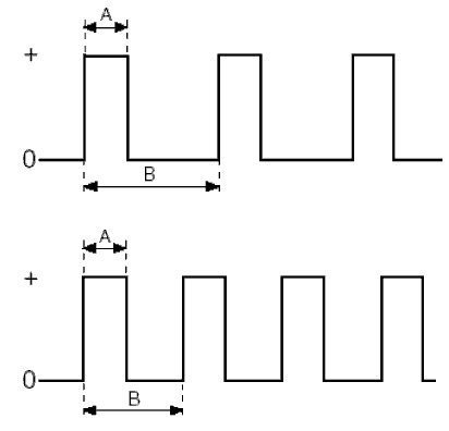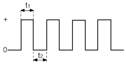 Если длительность для обоих уровней не одинакова (t1 не равно t2), сигнал также называют «импульсной последовательностью».