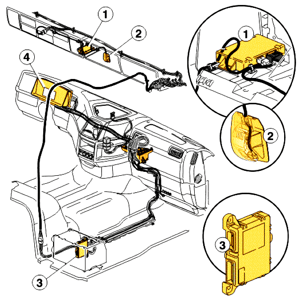Внимание: Блок DACU является общим для всех систем предупреждения водителя. Блок датчика угловой скорости рыскания (состоящий из датчика и блока питания) встроены в блок DACU.