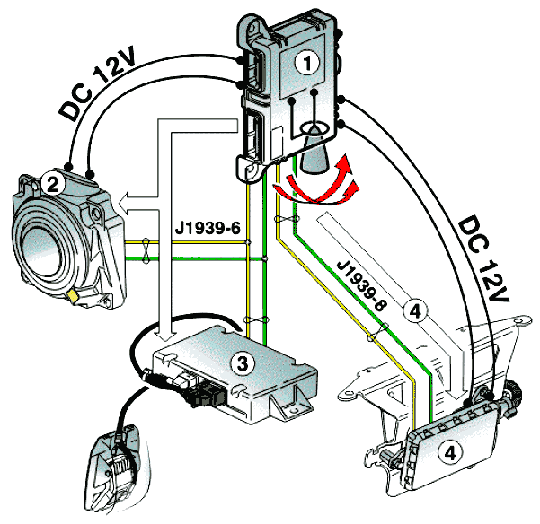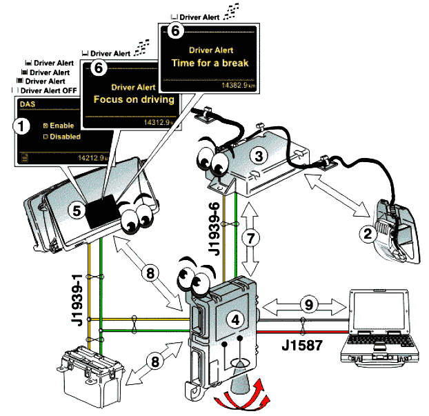Через шлюз DACU происходит передача сигнала, необходимого системам DAS и LKS, из канала связи CAN J1939–1 в собственный канал J1939–6 и обратно.