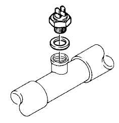 Термостат вентилятора включает штатный вентилятор транспортного средства, или если температура охлаждающей жидкости находится между 300С и 400С. Термостат замыкается при 40 ± 30С и размыкается при 30 ± 50С.