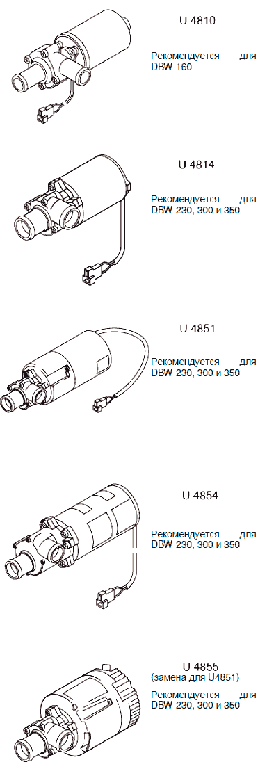 Устанавливаемый отдельно циркуляционный насос обеспечивает движение охлаждающей жидкости в контуре транспортного средства и подогревателя. Насос включается блоком управления и работает в течение всего времени работы подогревателя. Подогреватели могут функционировать с циркуляционными насосами U4810 (только DBW 160), U4814, U4851, U4854, U4855 или U4856.