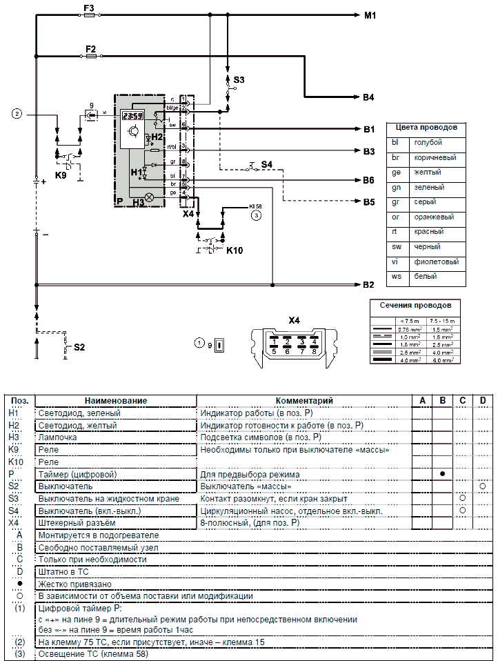 подогревателей и распиновка разъемов