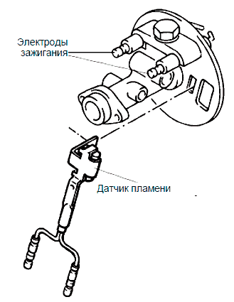 • датчик пламени, расположенные в подогревателе.