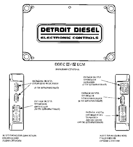 К основным компонентам системы DDEC относятся электронный модуль (ЕСМ), электронные форсунки (EUI) и различные датчики. Назначение датчиков - снабжать ЕСМ информацией о различных эксплуатационных характеристиках двигателя.