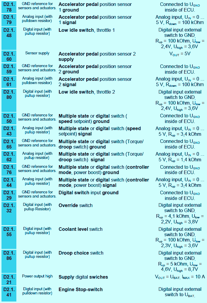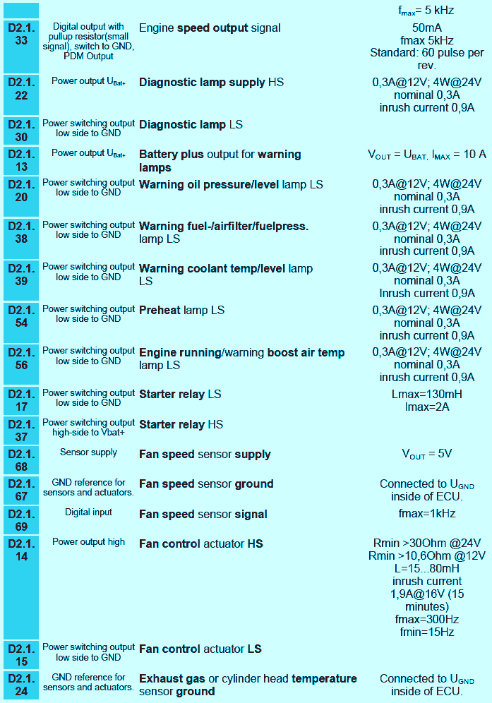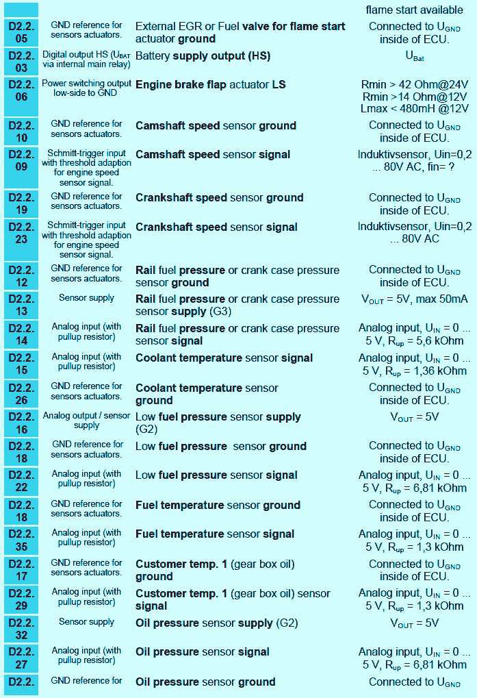 - socket D2.2 for connecting the engine cable harness for sensors and actuators,