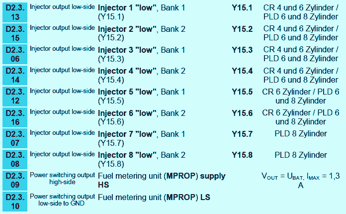 - socket D2.3 for connecting the engine cable harness for the fuel measuring unit and fuel injectors.