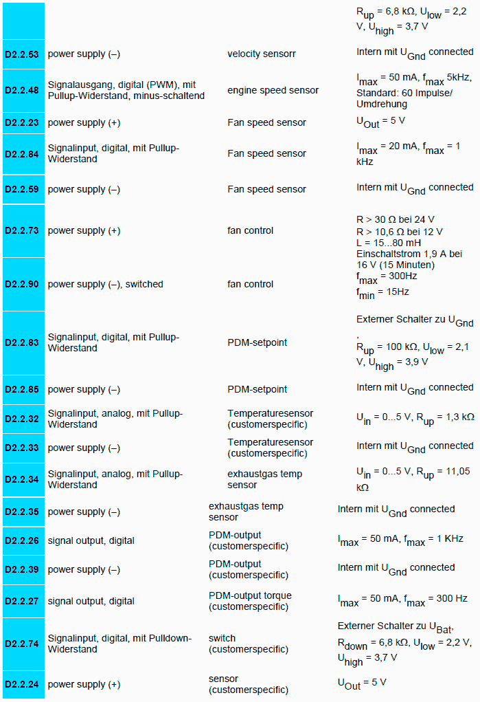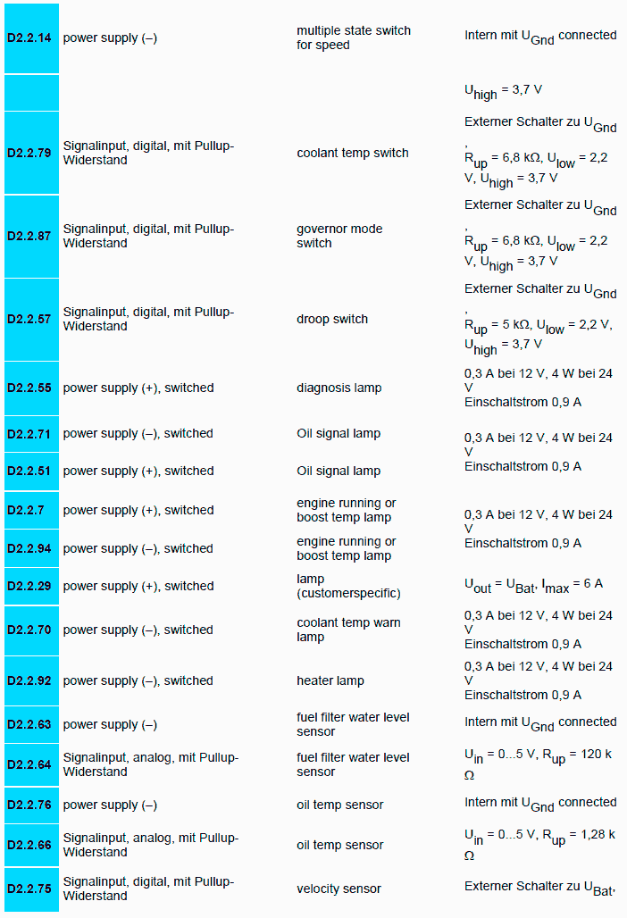 14 = engine sensors ( e.g. speed, coolant temp., oil pressure)