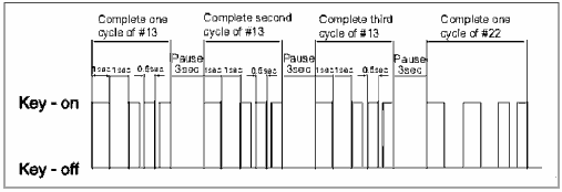 c. Если необходимо отобразить два кода неисправности или более, первый код отображается 3 раза, следующий код начинает отображаться после 3-х секундной паузы. Как указано выше, каждый код неисправности повторяется 3 раза.