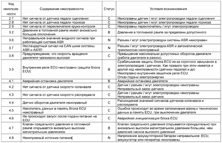 История устраненных кодов неисправностей удаляются автоматически из памяти ECU через 5 дней.
