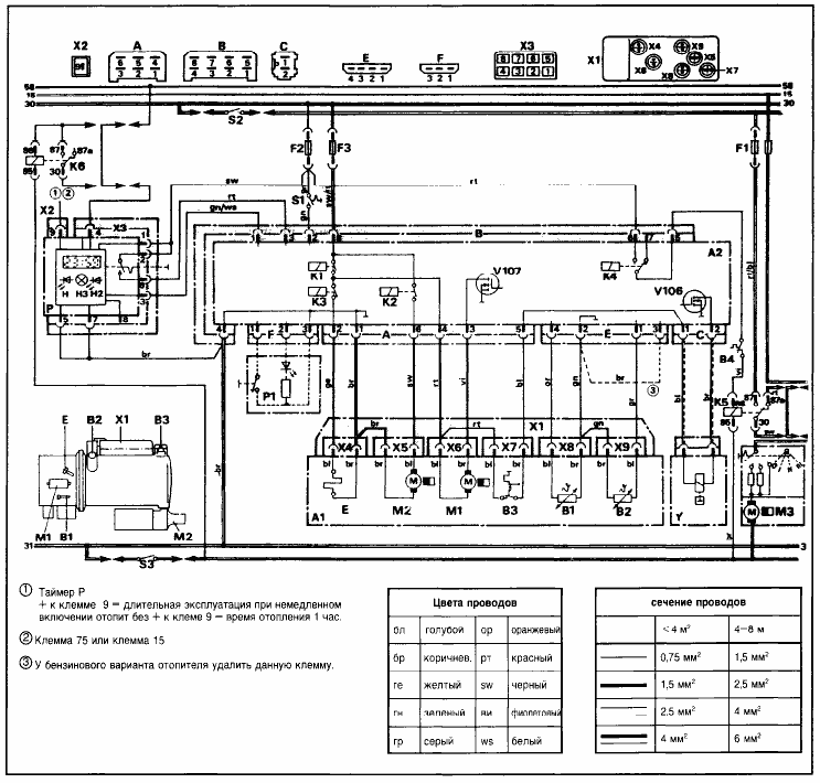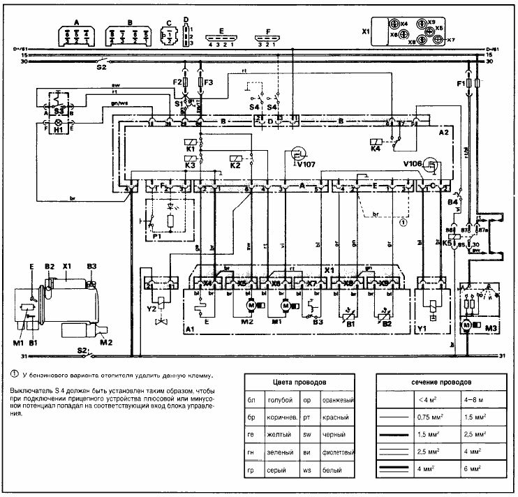 Схема подключения автоматики отопителя BW 80-TR 24 В (8025-3000-0001) (относится только к транспортным средствам, предназначенным для перевозки опасных грузов согласно TRGGVS/TRS)