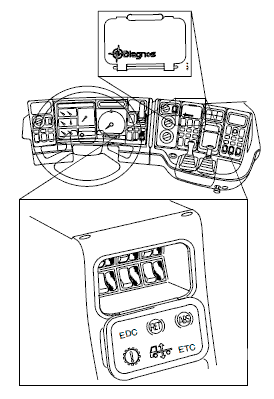 Диагностическая панель находится на приборной панели и состоит из нескольких выключателей и ламп. Диагностические выключатели предназначены для включения функции выдачи и для стирания