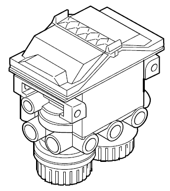 Модулятор управления тормозами прицепа представляет собой клапанный регулятор давления с электронным управлением. В случае отказа электронного устройства предусмотрен запасной режим работы пневматической секции модулятора, которая обеспечивает торможение прицепа.