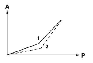 При слабом торможении на передний и задний мосты распределяется примерно одинаковое тормозное усилие, износ накладок при этом равномерный. Наиболее часто торможение происходит в этой области (≈2 бар).