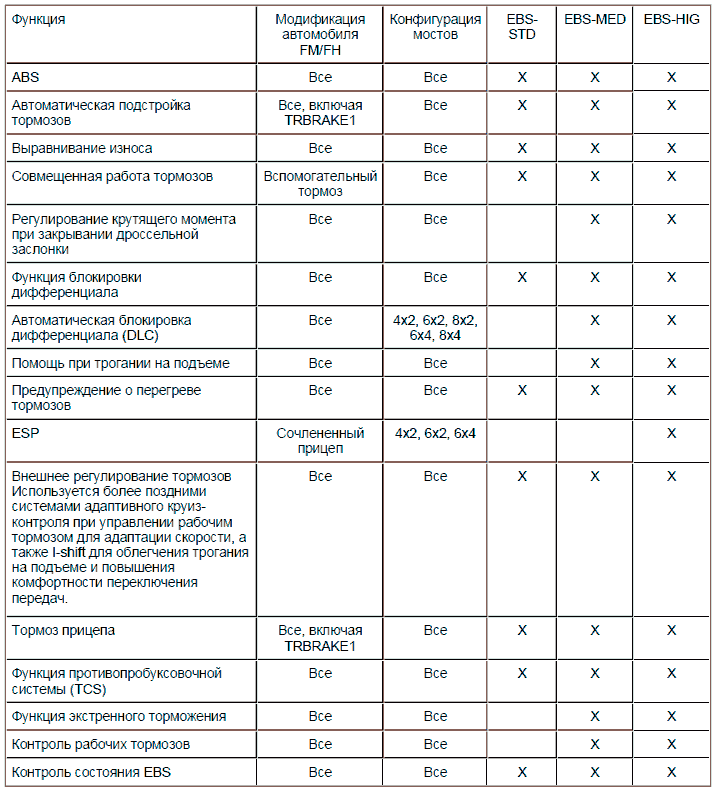 Тормозная система с электронным управлением (EBS) выпускается в трех различных комплектах: