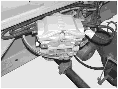 Модуль регулировки давления устанавливается справа и слева на переднем мосту, при этом глушитель должен быть направлен вниз.