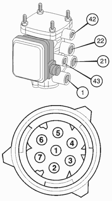- 22 Тормозное давление для правой стороны (не 8x2 или 6x2 с дополнительным задним мостом)