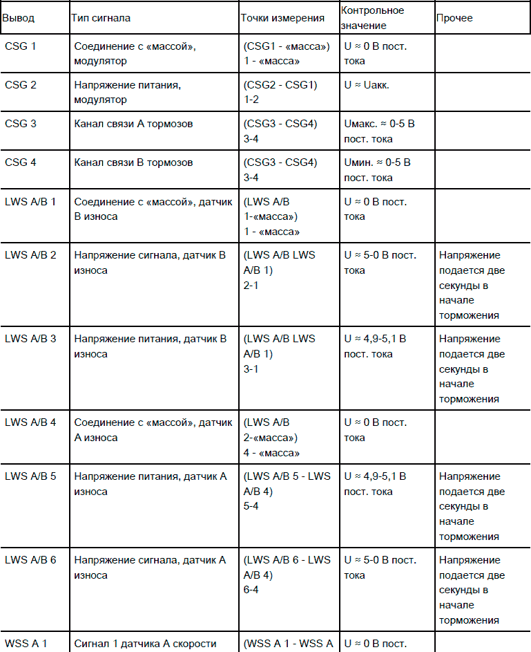 Электромагнитный клапан, ABS, характеристики сигналов