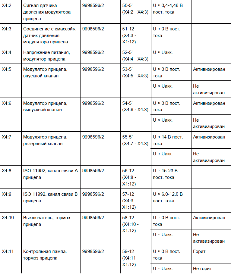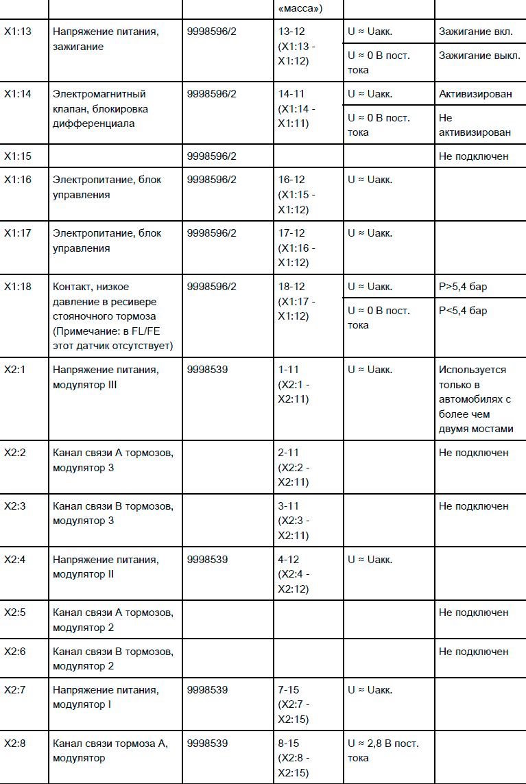 Сигналы компонентов тормозной системы EBS 5 KNORR