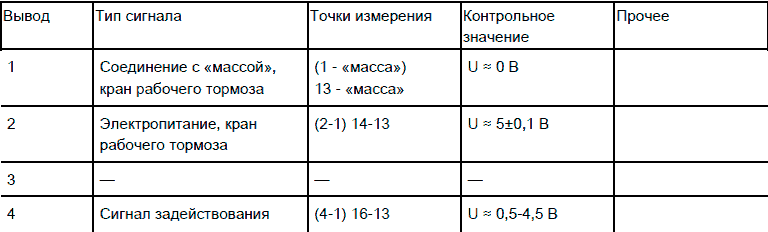 Кран рабочего тормоза, характеристики сигналов
