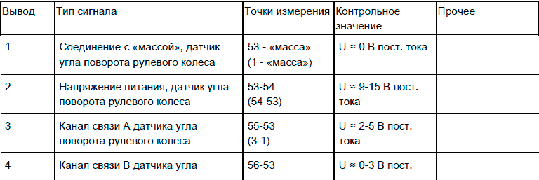 Датчик угла поворота рулевого колеса, характеристики сигналов
