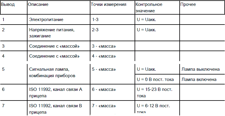 Разъем прицепа, характеристики сигналов