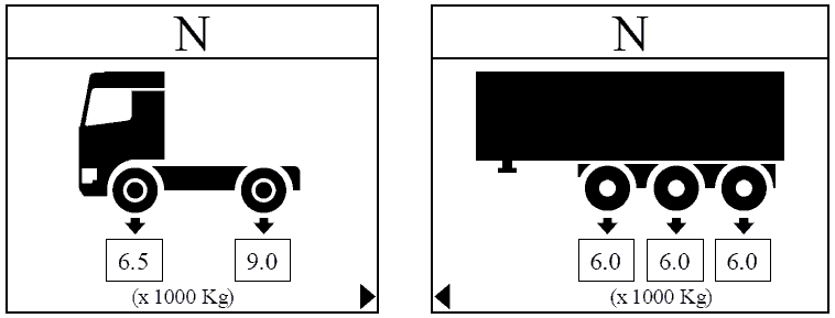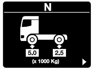 Нагрузка на переднюю ось не отображается. Она не измеряется, и вычисления могут быть неточными, нагрузка на ведущий мост ограничивается 8,0 тоннами.