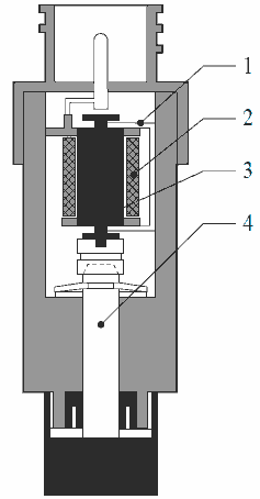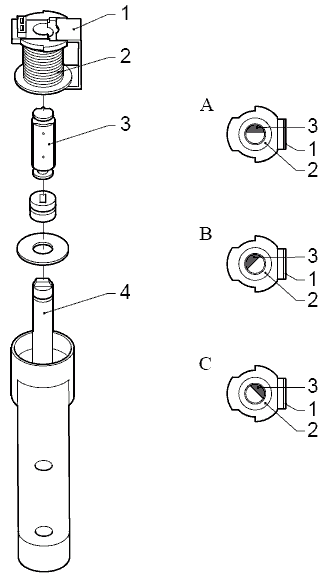 Датчики высоты состоят из неподвижной катушки (2) с металлической перемычкой (1). В катушке имеется сердечник (3), на котором установлена металлическая пластина в форме полумесяца. Данный сердечник перемещается вслед за движением горизонтального стержня управления благодаря оси (4).
