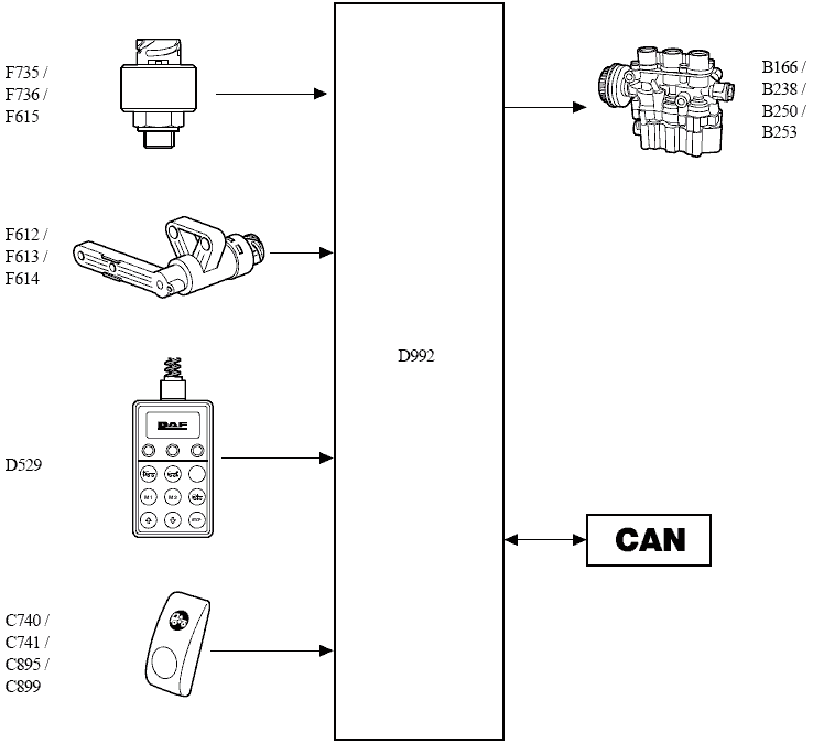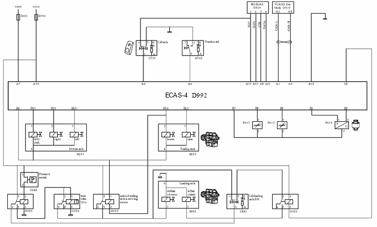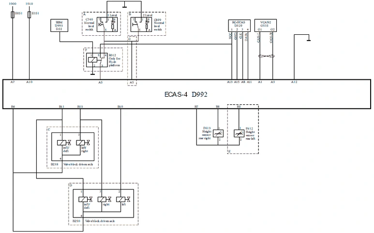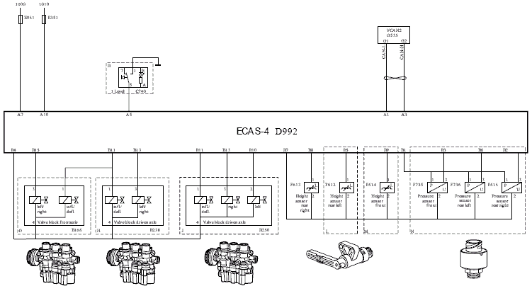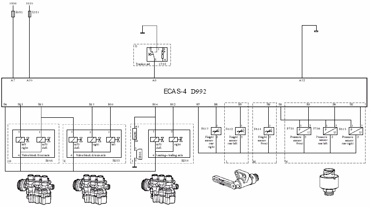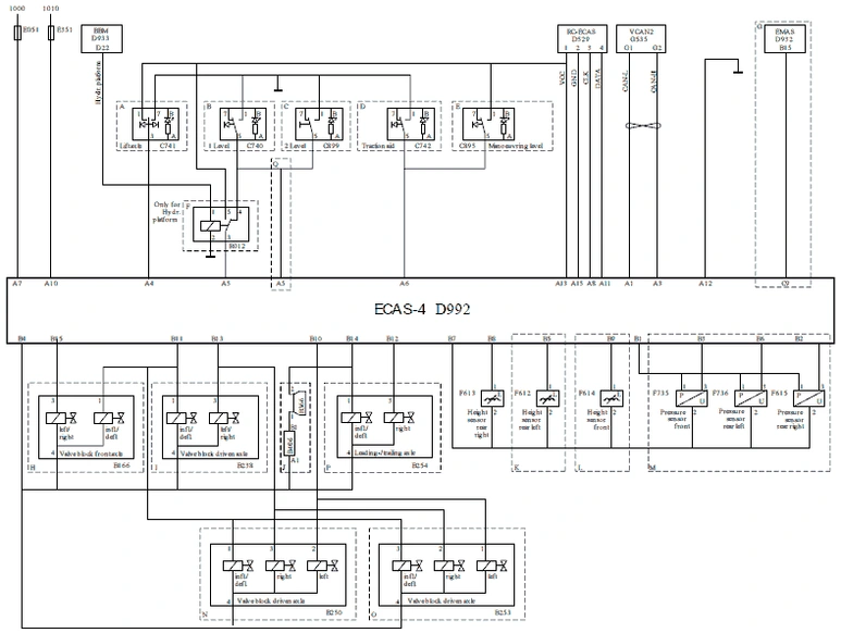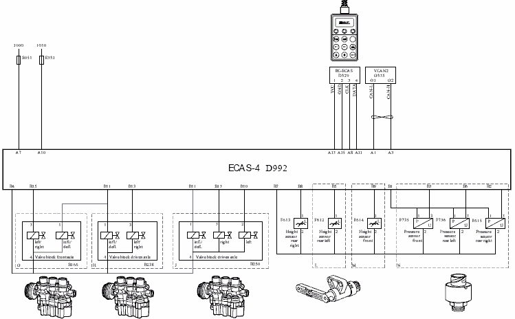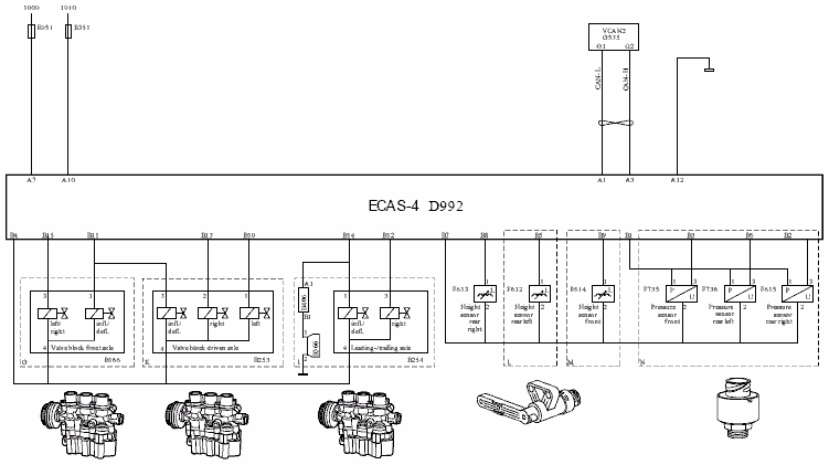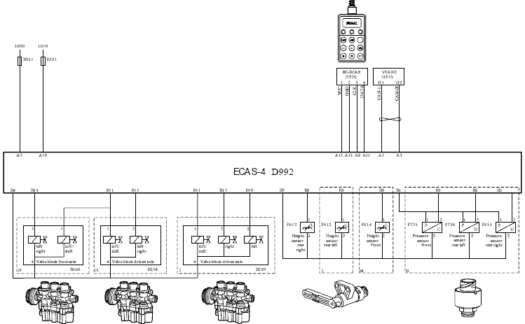 Электронный блок (D992) обрабатывает сигналы системы ECAS-4.