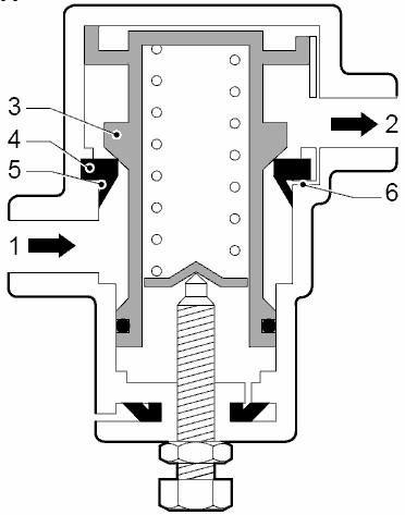 Данный клапан поддерживает остаточное давление в пневмобаллонах поддерживающей оси и в