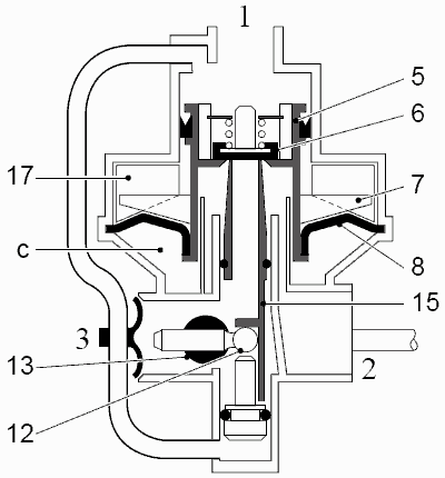 Данный клапан поддерживает остаточное давление в пневмобаллонах направляющего заднего моста/поддерживающей оси и в пневмобаллонах подъема поддерживающей оси, чтобы избежать деформации