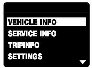 Нажимайте на главный переключатель меню, пока не откроется следующий экран, затем снова нажмите на переключатель, чтобы войти в меню информации об автомобиле "Информация об автомобиле".