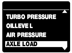Система мониторинга нагрузки на ось вычисляет данные нагрузки, основываясь на давлении в пневмобаллонах подвески. Водитель может вывести на главный дисплей DIP нагрузки на отдельные оси и вес груза с помощью главного переключателя меню.