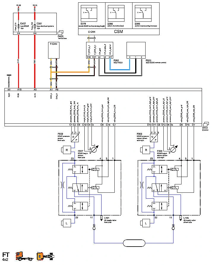 ECAS pressure sensor(s) (F899/F900/F901/F902/F904/F905/F909).