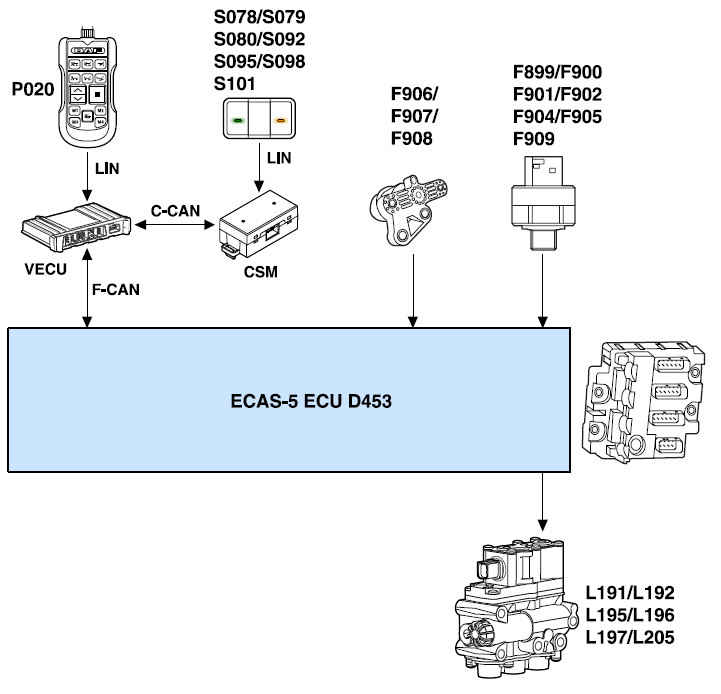 The electronic control unit (D453) processes the signal of the ECAS-5 system.