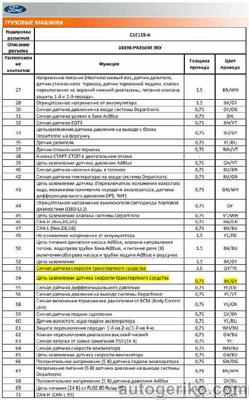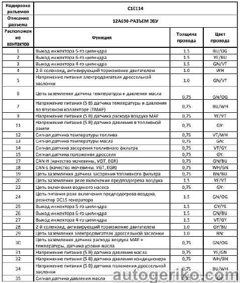 Описание и распиновка ЭБУ с двигателя Ecoroq 12.7L 16MY