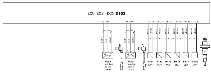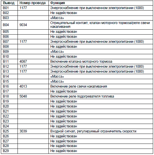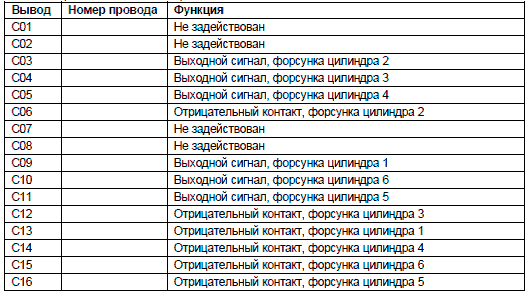 Разъем С представляет собой 16-полюсную колодку с выводами для форсунок.