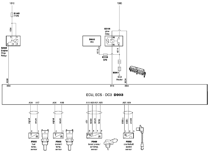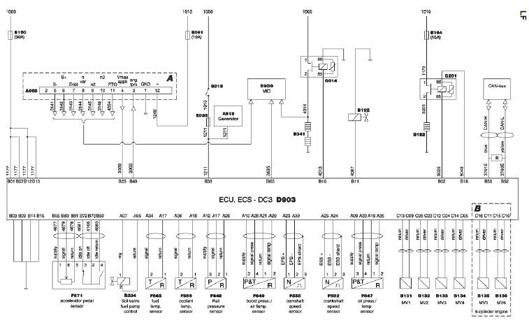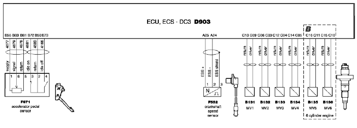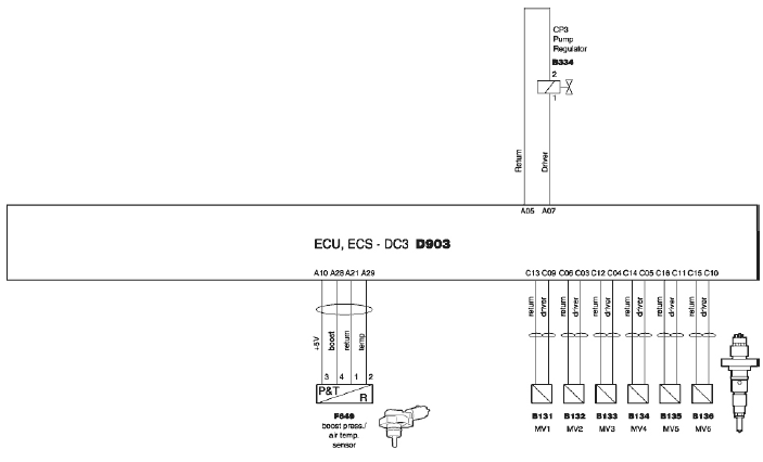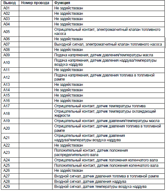 Разъем А представляет собой 36-полюсную колодку с выводами для датчиков и электромагнитного клапана управления топливным насосом.
