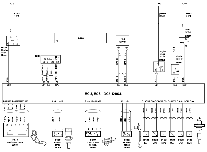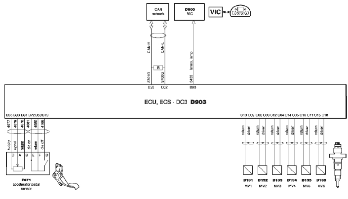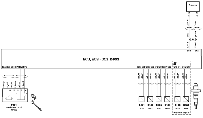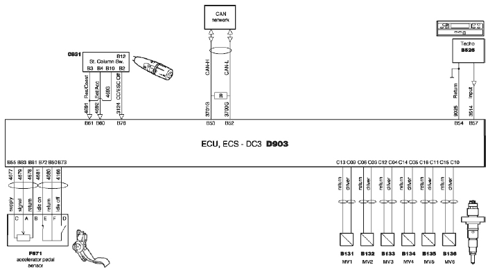 Через сеть CAN электронный блок ECS-DC3 связывается с другими электронными системами, установленными на автомобиле. Обмен данными при диагностике диагностическим сканером также происходит по сети CAN.