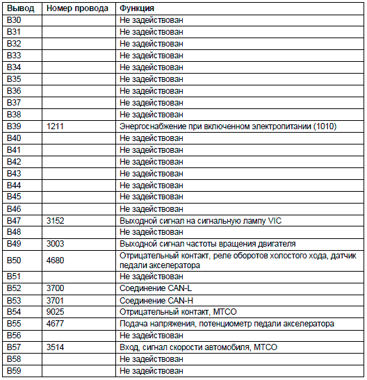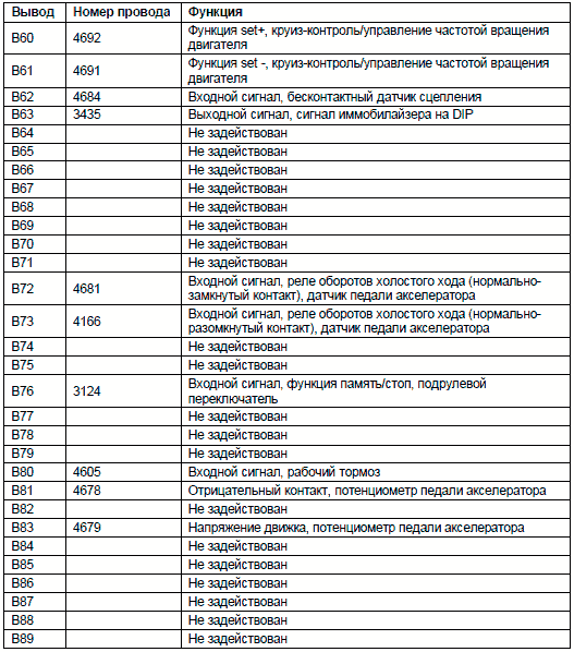 Разъем В представляет собой 89-полюсную колодку с выводами для функциональных узлов автомобиля.