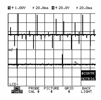 На верхнем изображении представлен датчик движения иглы канал 5 в зависимости от частоты вращения канал 4.