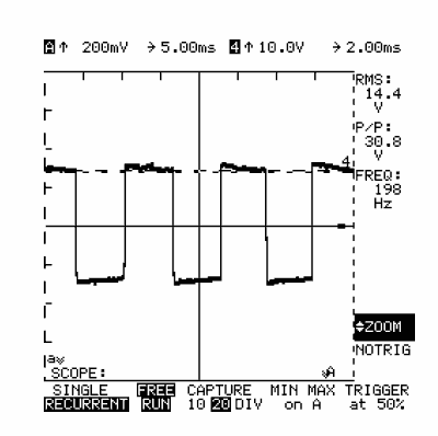 Передаточное отношение сигнала может быть установлено на осциллографе.