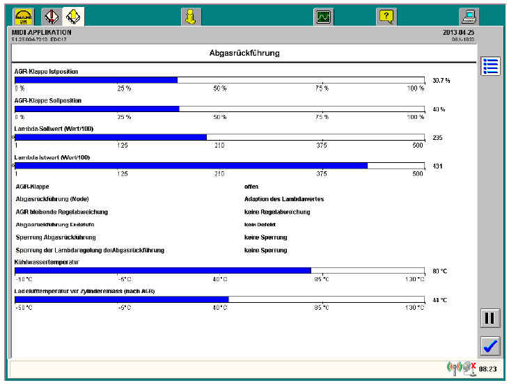 В качестве управляющего сигнала регулятора AGR отображается значение в процентах, заданное блоком управления.