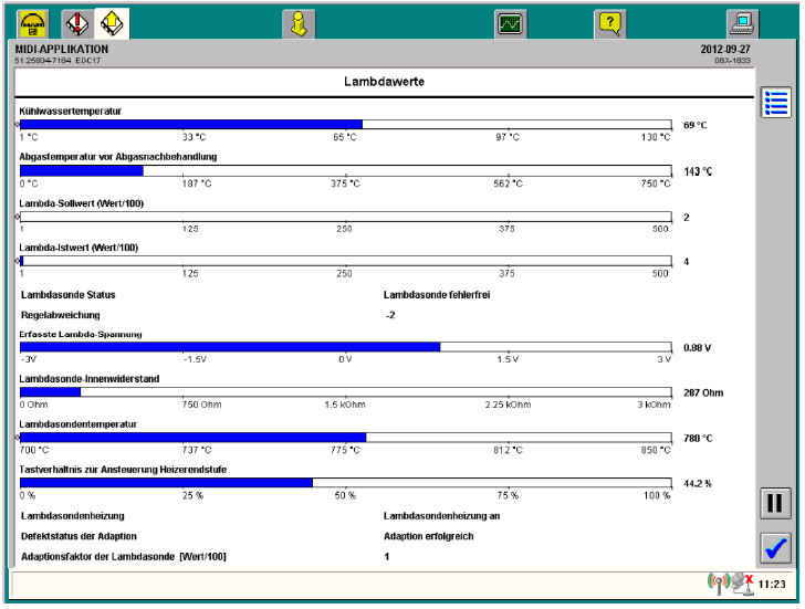 В качестве управляющего сигнала отопителя лямбда-зонда отображается значение в процентах, заданное блоком управления.