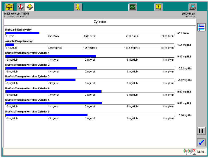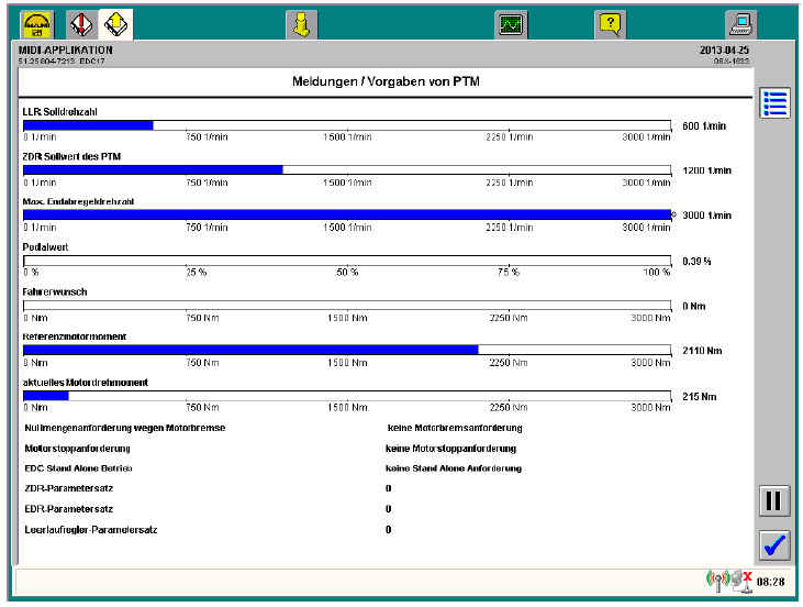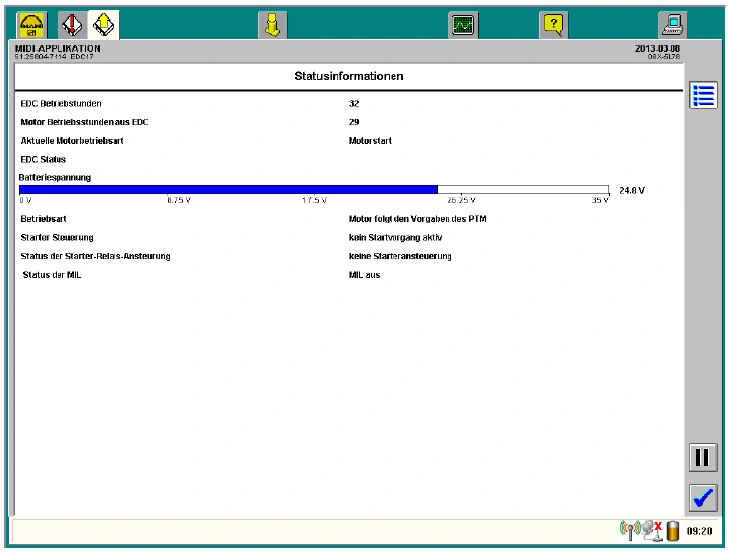 Ниже приводятся описания всех основных экранов мониторинга. Следует учесть, что для двигателей автобусов серий D0836 LOH и D2066 LUH используется версия программы блока управления EDC17 V4.8.5, а для двигателей грузовых автомобилей серий D08, D20, D26 и для двигателей автобусов серий D20/D26 LOH — версия V5.5.1. Существуют различия в окне мониторинга «Статусная информация», «Сажевый фильтр» и «Температура ОГ/значения давления». Эти различия рассматриваются в соответствующих главах.