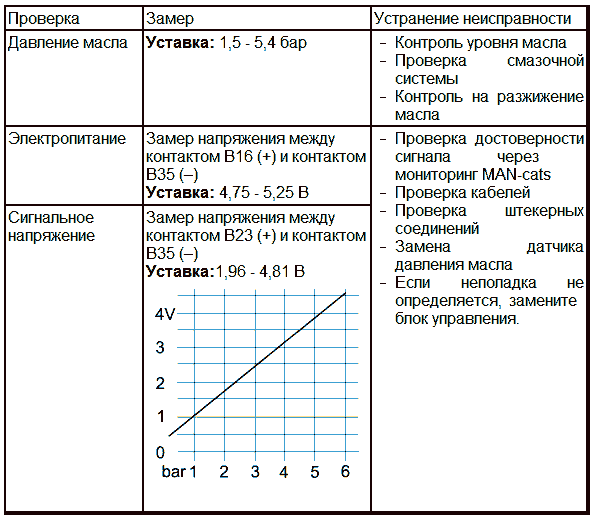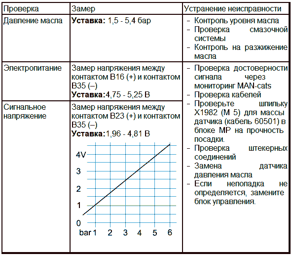 Классификация сбоя, когда двигатель не работает и давление масла > 0,5 бар или при работающем двигателе давление масла не меняется.