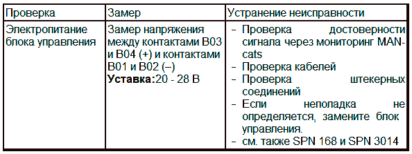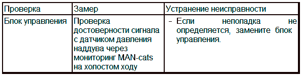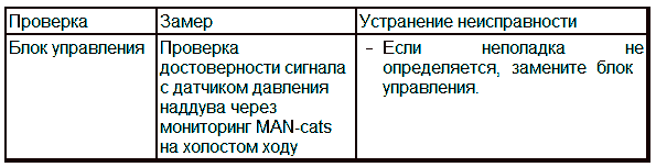 Порядок действий: Если при считывании регистратора неисправностей через MAN-cats этот сбой записан в памяти, а в "условиях окружающей среды" указанная частота вращения меньше частоты вращения на холостом ходу, значит возникла вышеописанная проблема и датчик движения иглы не подлежит замене.