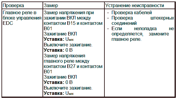 Если напряжение аккумулятора падает ниже 8 В, блок управления EDC отключается.