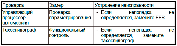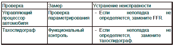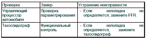 Управляющий процессор автомобиля (FFR) передает неверное числовое значение или неисправен тахоспидограф, так как FFR выполняет только роль шлюза.
