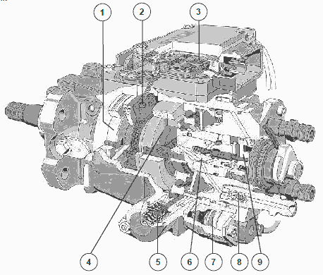 ТНВД VP 44 состоит в основном из следующих компонентов: